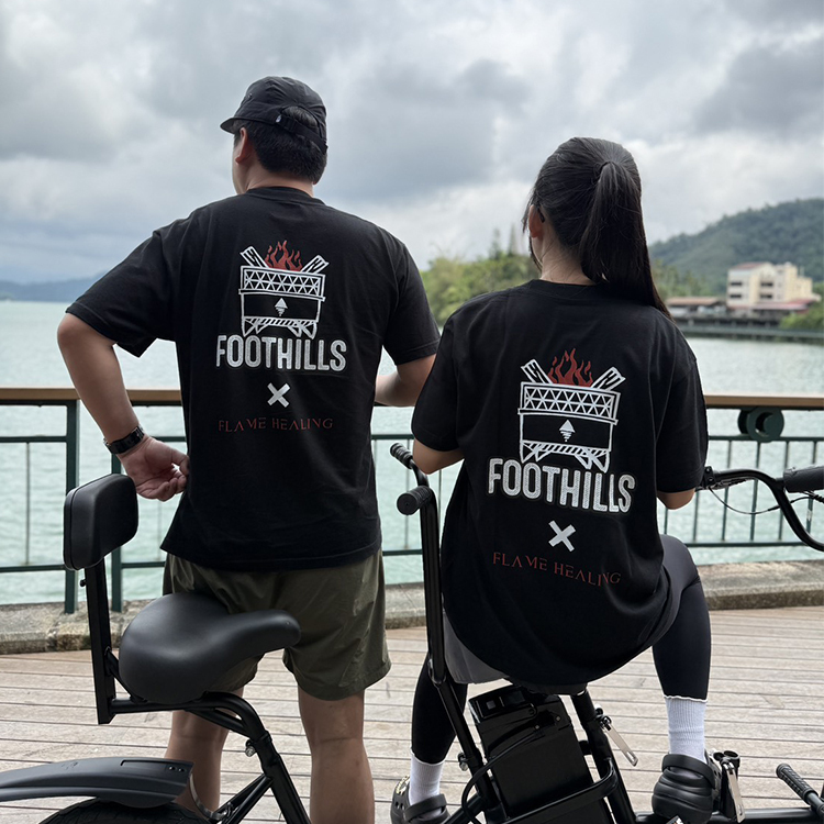 融合戶外靈魂與日常風格,這款品牌T-shirt以極簡線條呈現山麓焚火台,象徵「火的療癒力」,無論露營、戶外活動或日常穿搭都合適!
